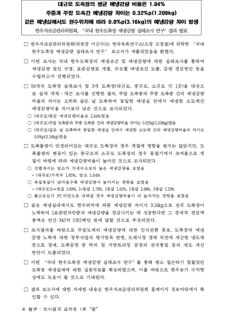 [보도자료] 한우자조금, ‘국내 한우도축장 예냉감량 실태조사 연구’결과 발표.hwp