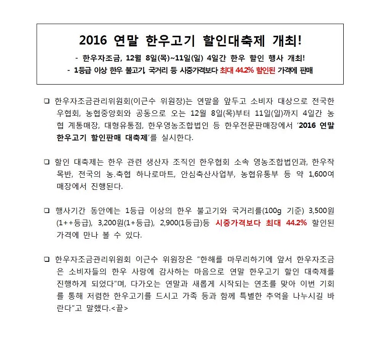 [보도자료]2016 연말 한우고기 할인대축제 개최!.hwp