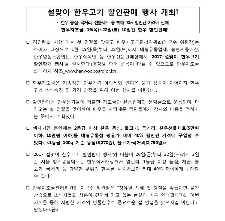 [보도자료]2017 설맞이 한우고기 할인판매 행사!.hwp