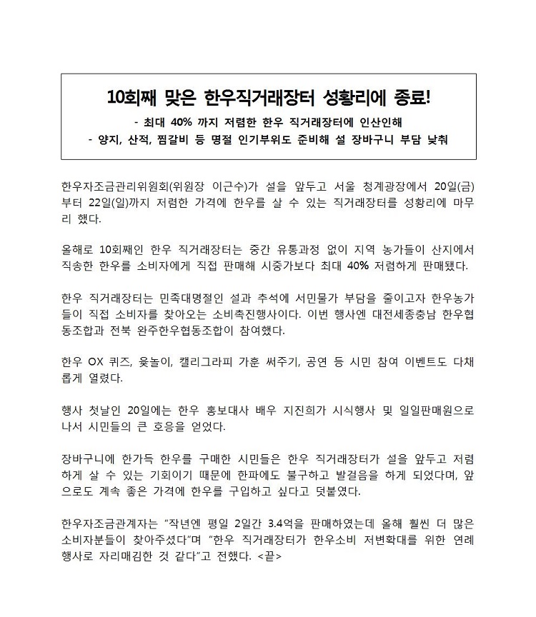 [후속보도자료]설 맞이 청계천 한우직거래장터 성료.hwp