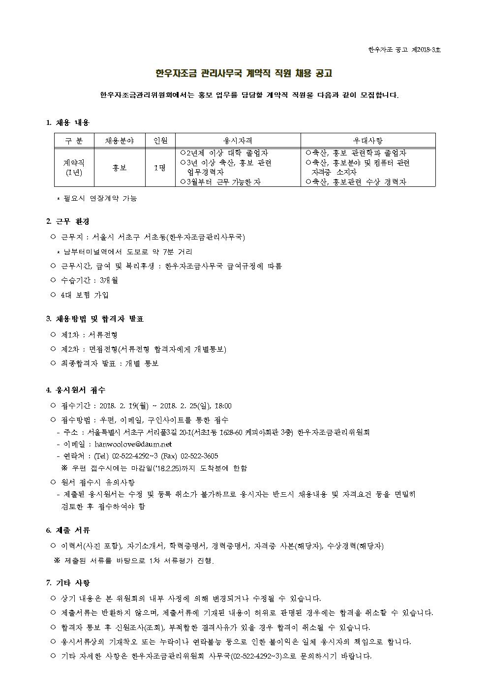 [채용공고] 한우자조금 사무국 계약직 직원(홍보) 채용공고