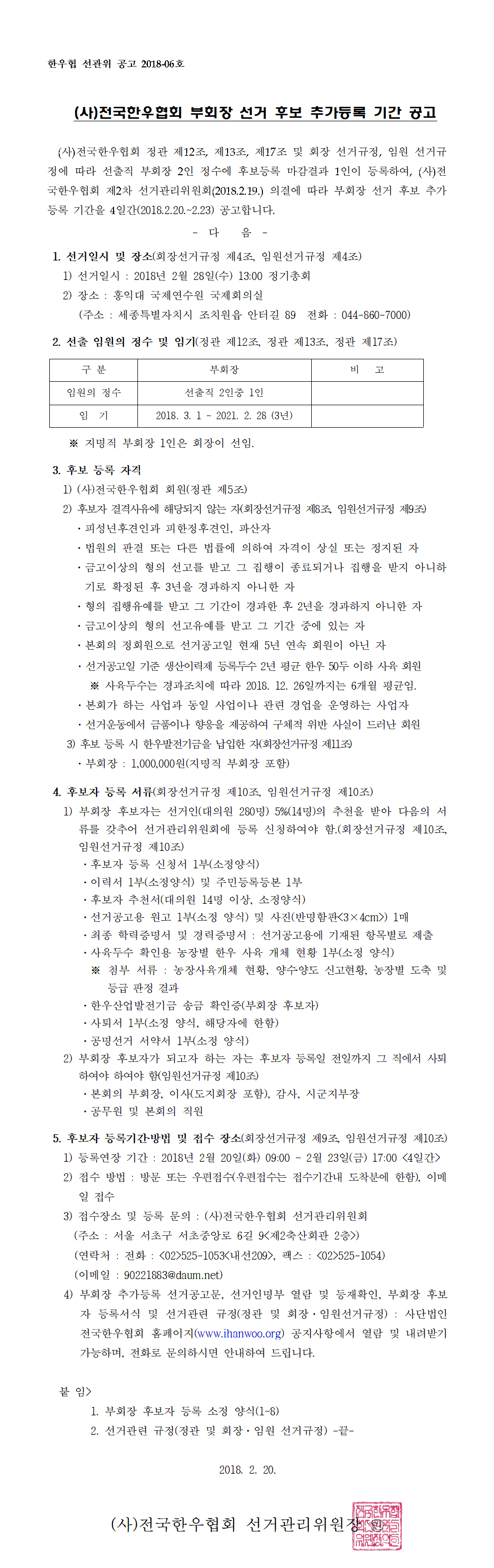 20180220 [공고](사)전국한우협회 부회장선거 후보 추가 등록기간 공고.hwp