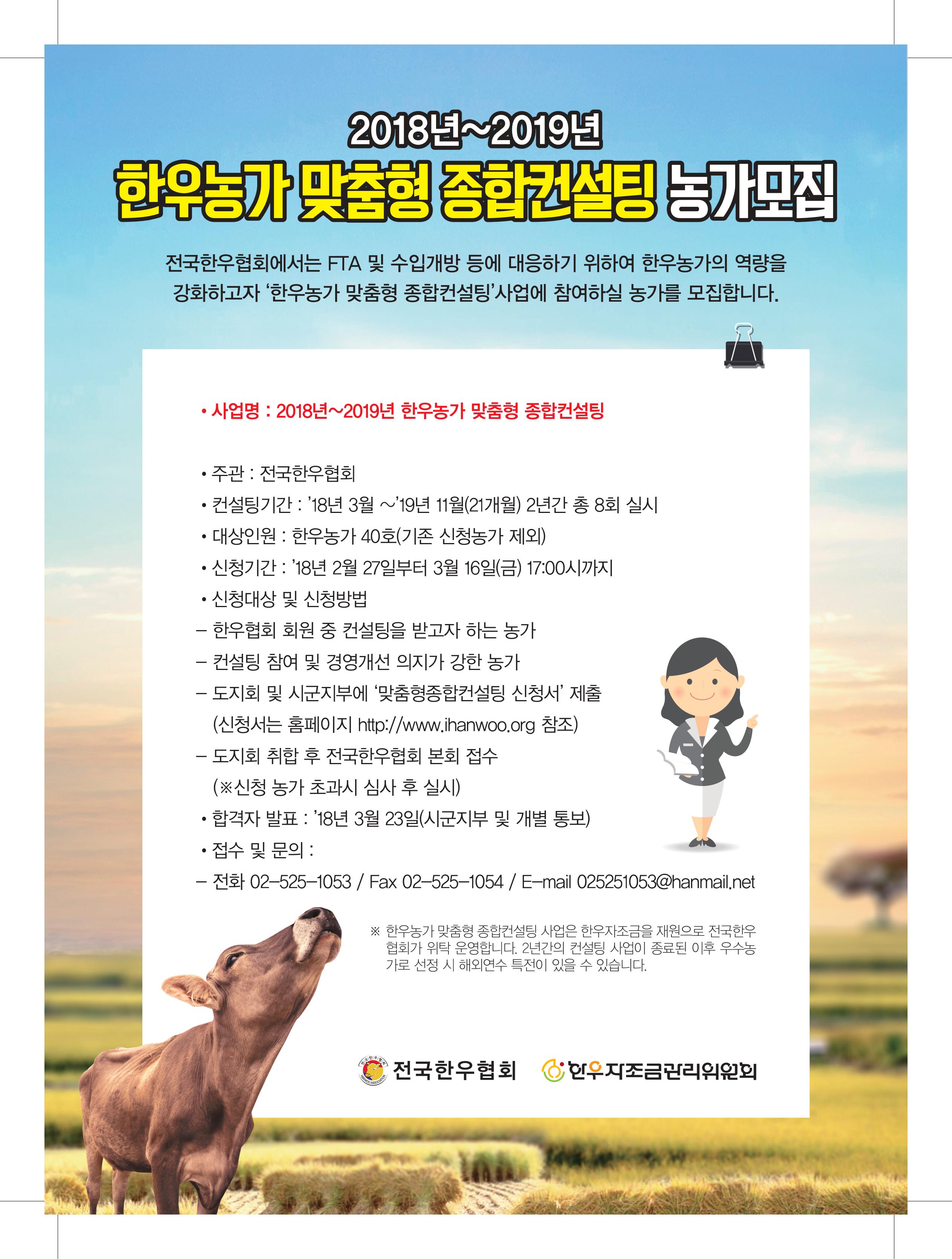 2018/19년 한우농가 컨설팅사업 대상 농가모집(전국한우협회)