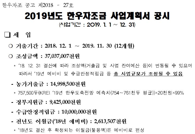 2019년 한우자조금 홍보사업별 사업설명회 안내 공고