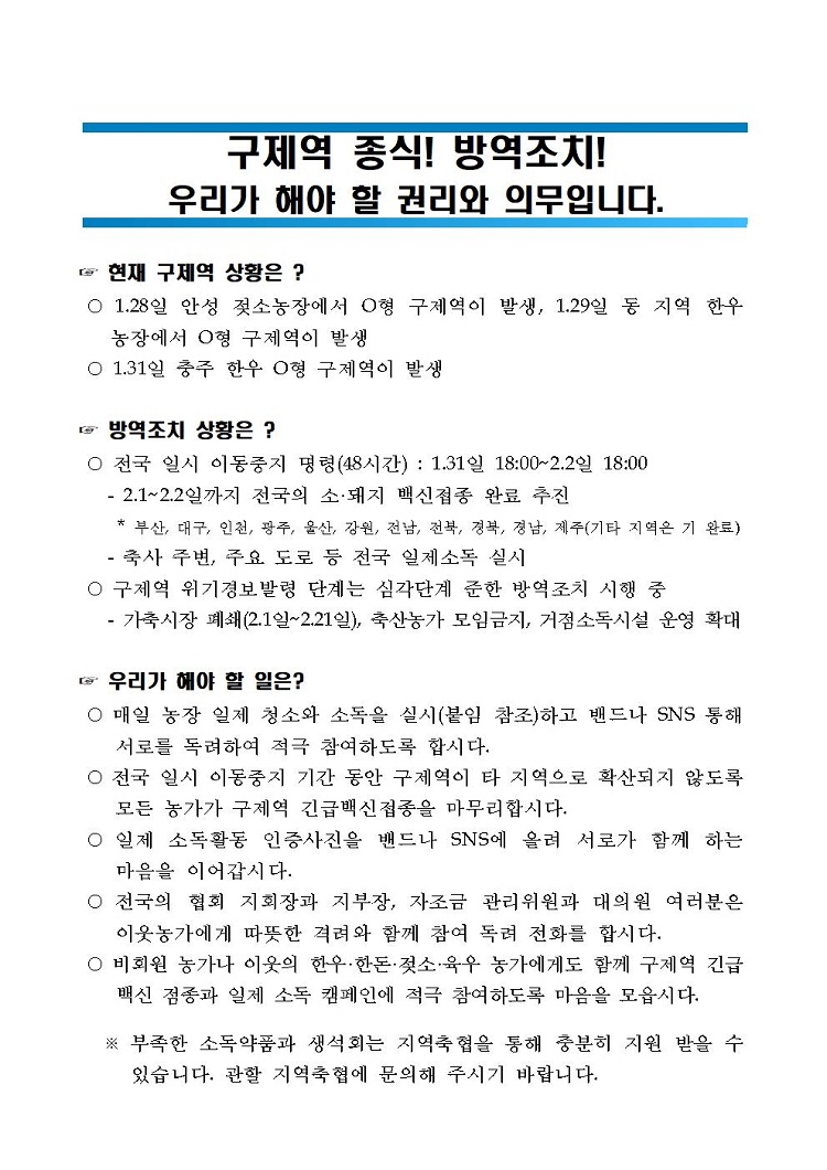 3. 구제역이 조기 종식될 수 있도록 적극적인 협조와 깊은 관심 바랍니다.