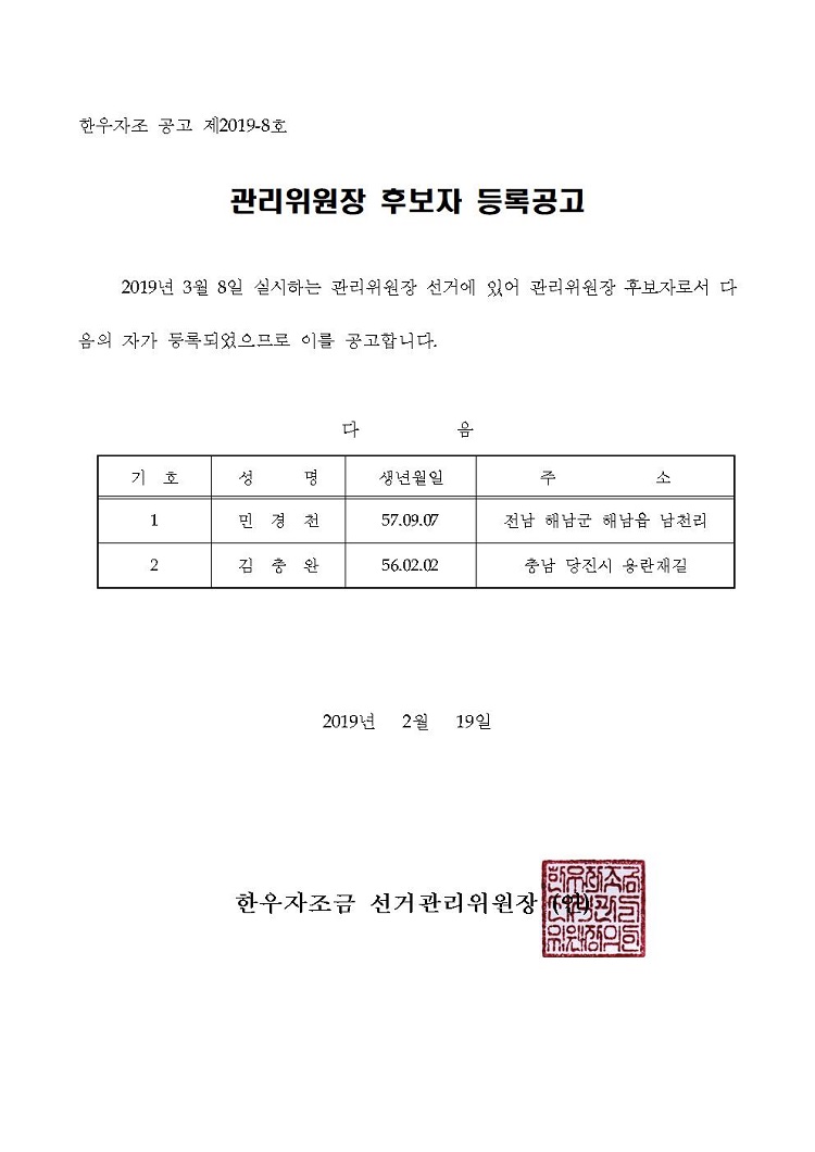 [공고] 제4기 후반기 한우자조금 관리위원장 후보자 등록공고