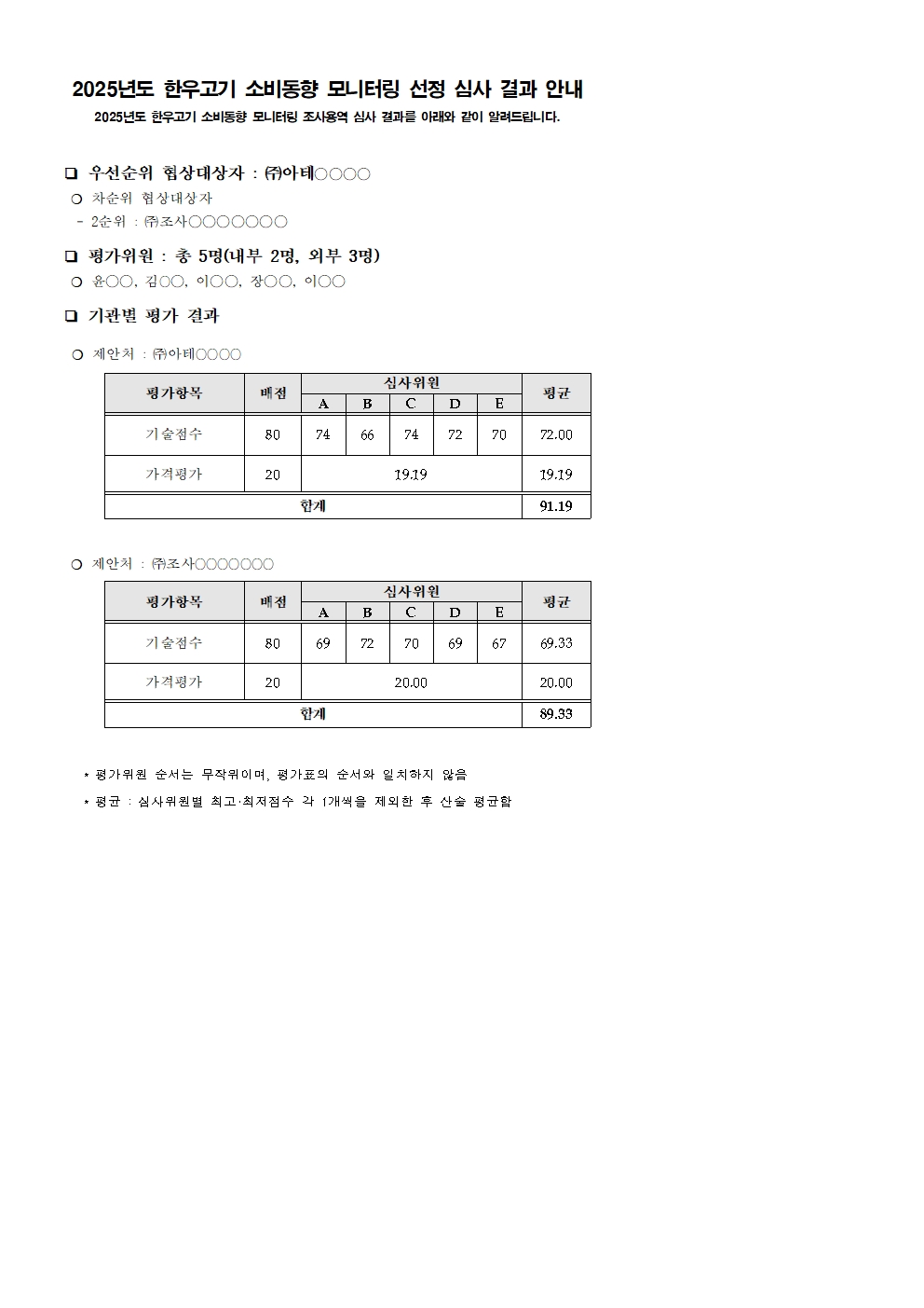 2026년 온라인 한우장터 운영 대행사 선정 심사 평가결과 안내