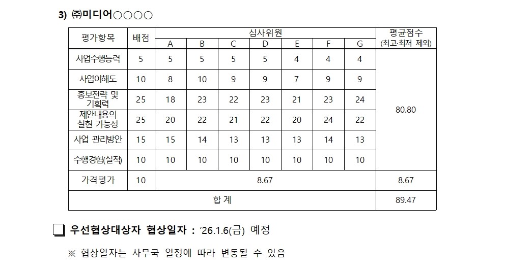 2026년 온라인 한우장터 운영 대행사 선정 심사 평가결과 안내
