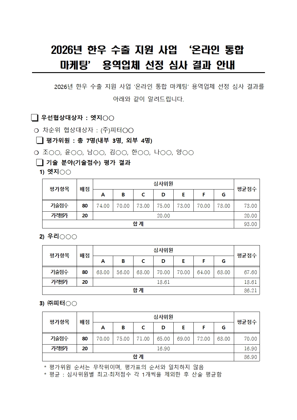 2026년 한우 수출 지원 사업 ‘온라인 통합 마케팅’ 용역업체 선정 심사 결과 안내