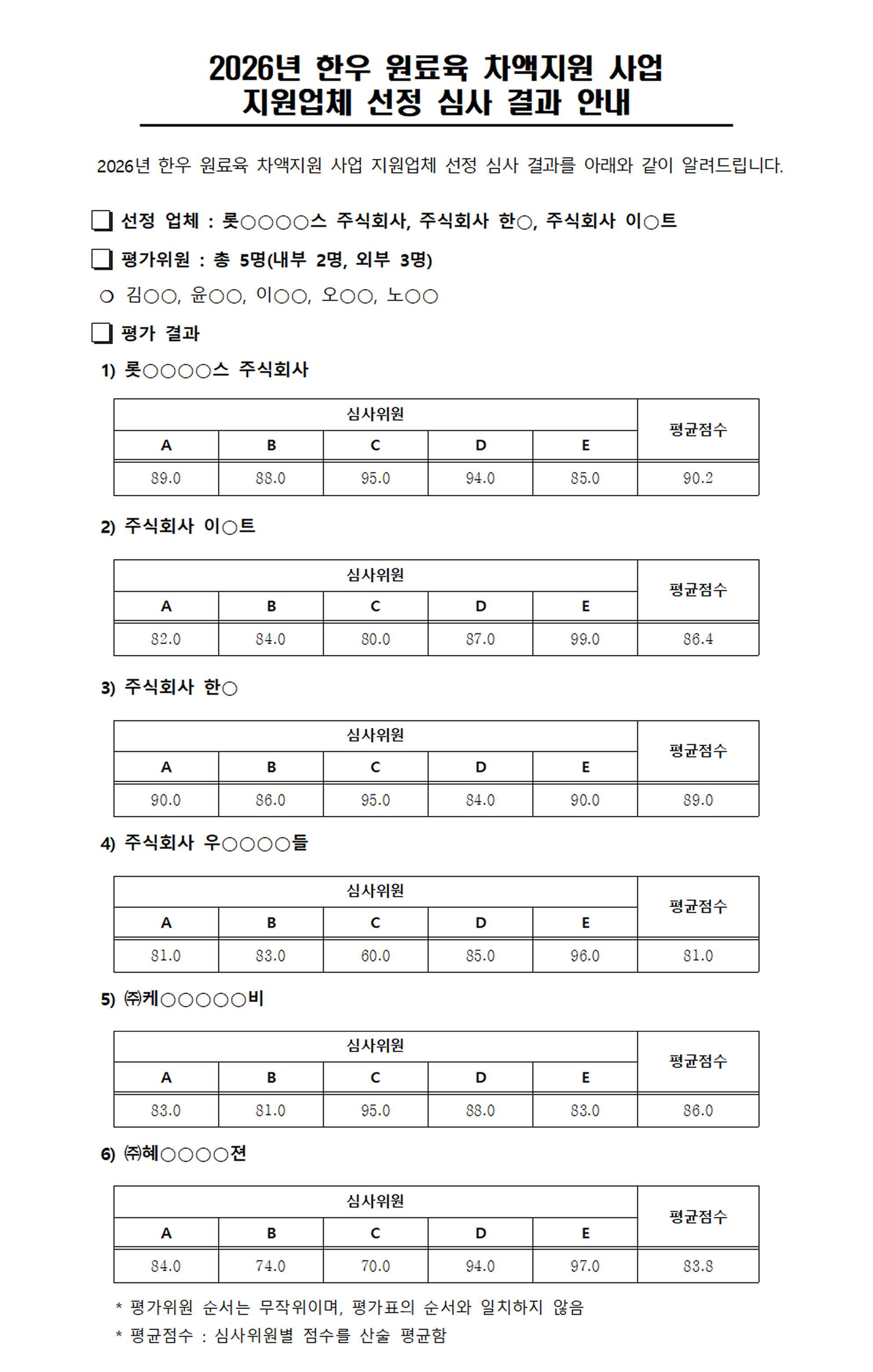 2026년 한우 원료육 차액지원 사업 지원업체 선정 심사 결과 안내