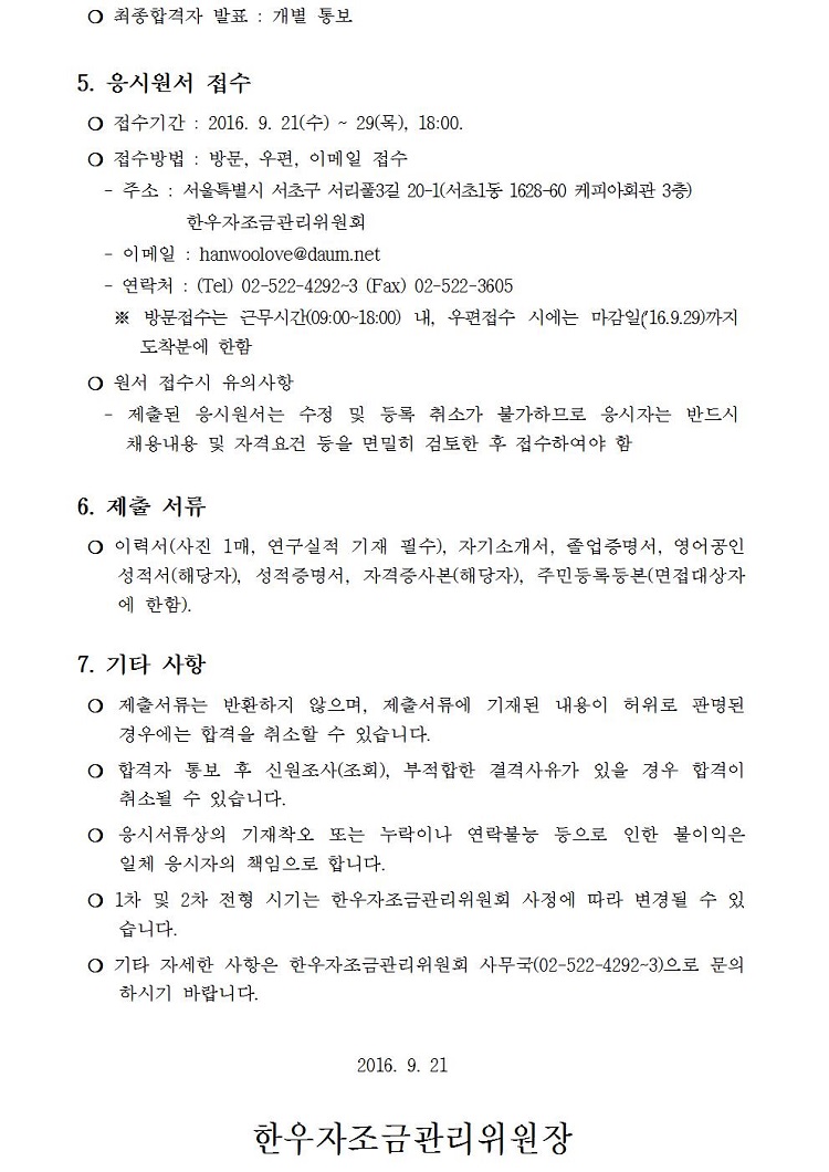 한우자조금사무국 계약직원 채용의 건(교육조사부)_공고문.hwp