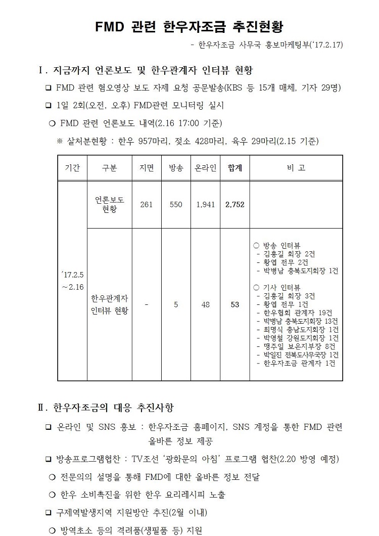 FMD 관련 한우자조금 추진현황