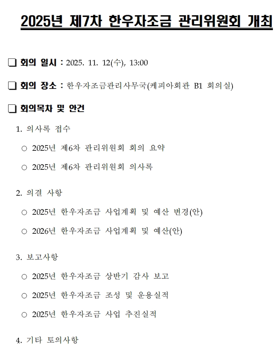 2025년 제7차 한우자조금 관리위원회 회의 결과