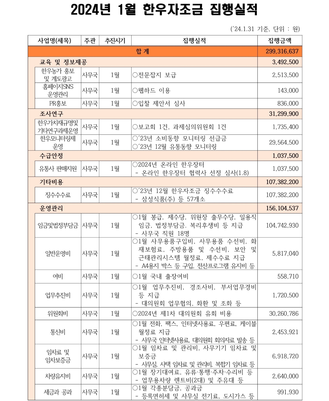 2024년 1월 한우자조금 집행실적