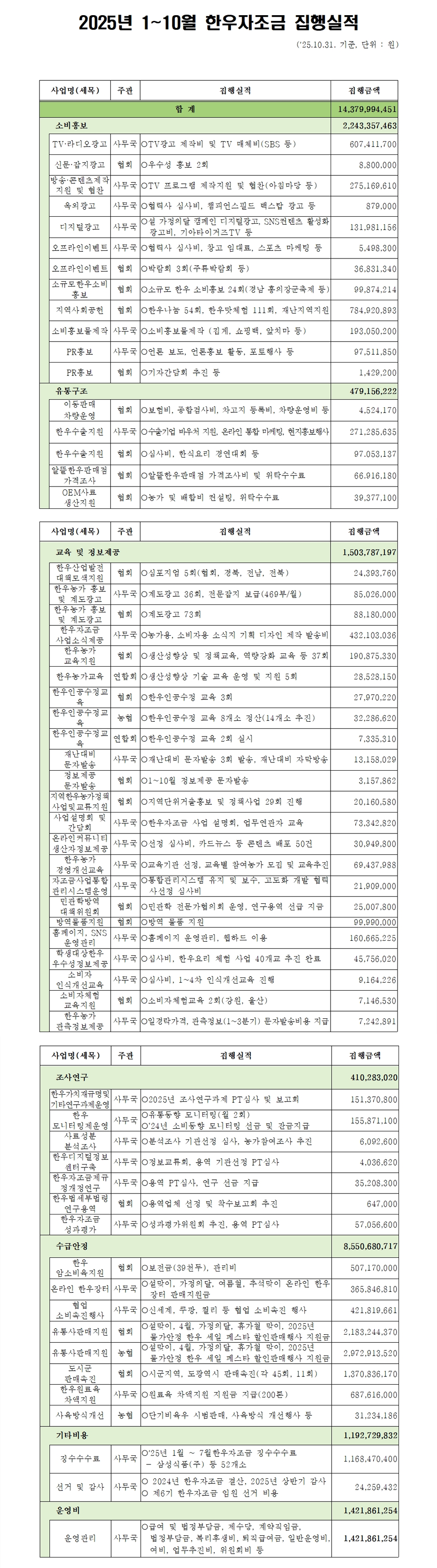 별첨) 2025년 한우자조금 사업 1~10월 집행실적 보고.hwp