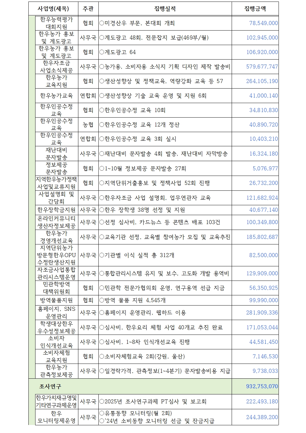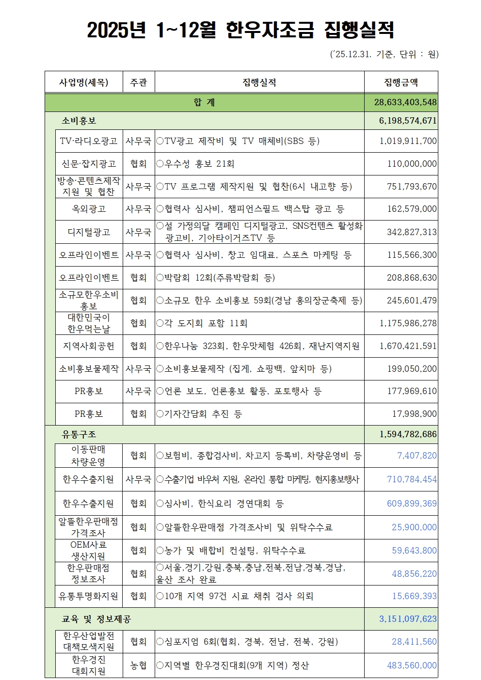 별첨) 2025년 한우자조금 사업 1~12월 집행실적 보고.hwp